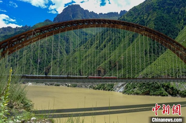 圖為一列火車經(jīng)過西藏雅魯藏布江藏木大橋。江飛波攝