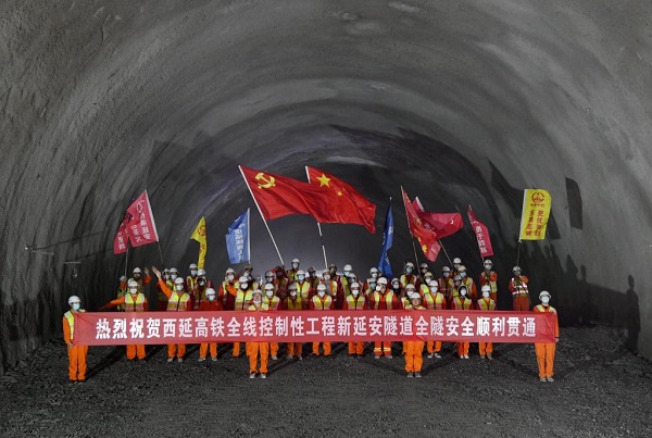 西延高鐵新延安隧道順利貫通。(新華社記者李一博攝)