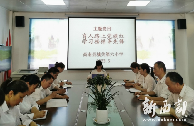 為發(fā)揮黨建引領(lǐng)和先進典型示范和輻射、帶動的作用,激勵全體教師立德修身,潛心治學(xué),爭當(dāng)育人先鋒、教學(xué)先鋒、服務(wù)先鋒、紅燭先鋒等,陜西省商洛市商南縣城關(guān)第六小學(xué)黨支部5月17日召開“育人路上黨旗紅 學(xué)習(xí)榜樣爭先鋒”主題黨日活動?;顒佑筛毙iL高麗主持,全體黨員和骨干教師代表參加。