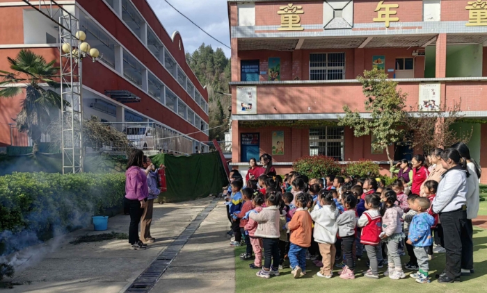 在消防演練前,保衛(wèi)處對全體教師進(jìn)行了消防知識及滅火器使用培訓(xùn),幫助教職工掌握消防應(yīng)急常識和處置流程,明確各崗位人員工作職責(zé);各班根據(jù)幼兒年齡特點(diǎn),以故事、圖片、視頻、幻燈片等方式,對幼兒進(jìn)行消防安全知識教育,引導(dǎo)幼兒了解火災(zāi)的危害,幫助幼兒更好地掌握基本的自救技能,提高安全意識以及防范能力。