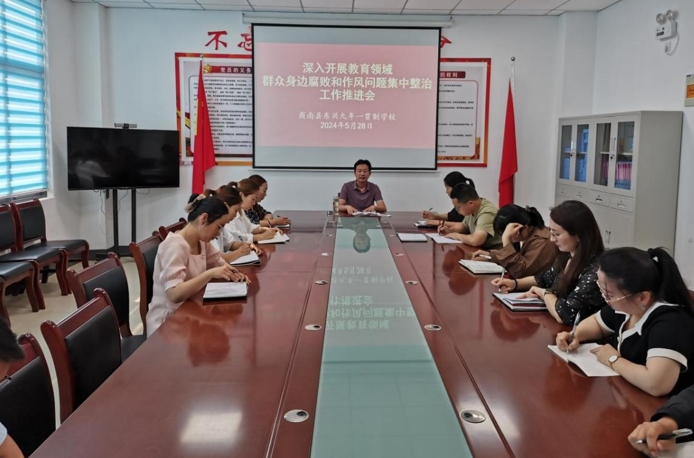 5月28日,陜西省商南縣東興九年一貫制學(xué)校召開教育領(lǐng)域群眾身邊腐敗和作風(fēng)問題集中整治工作推進會。學(xué)校全體教職工參加了會議。