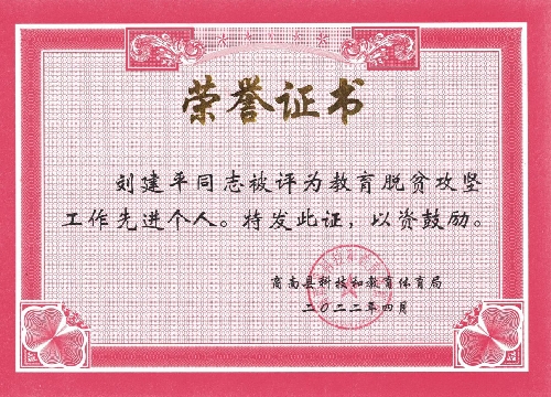 2013年8月,他從湘河中學(xué)轉(zhuǎn)崗到湘河幼兒園擔(dān)任門衛(wèi)工作,期間,負(fù)責(zé)校園安全管理、蛋奶加工、水電維修等工作,他是第一個(gè)進(jìn)入幼兒園班子成員的門衛(wèi)。2020年3月,清油河幼兒園財(cái)務(wù)獨(dú)立,他是清油河幼兒園的第一任會(huì)計(jì),疫情期間不通車,他經(jīng)常騎自行車或者步行上街為幼兒園購(gòu)買口罩、酒精、84消毒液等防疫物資。2023年,建筑消防安全形勢(shì)嚴(yán)峻,在園長(zhǎng)的大力支持下,他經(jīng)過(guò)培訓(xùn)考試成了清油河幼兒園第一個(gè)消防設(shè)施操作員,2023年度,清油河幼兒園被縣消安委評(píng)為“消防工作先進(jìn)校園”。在幼兒園工作期間,他三次被縣委縣政府評(píng)為“優(yōu)秀教師”;2022年被縣教體局評(píng)為新冠肺炎疫情防控工作“先進(jìn)個(gè)人”、教育脫貧攻堅(jiān)工作“先進(jìn)個(gè)人”;2023年,在全縣教育系統(tǒng)中層干部技能大賽中,他榮獲后勤組“二等獎(jiǎng)”。在各類先進(jìn)和優(yōu)秀評(píng)選工作上,尤其是崗位聘任工作上,他從來(lái)不跟同事們爭(zhēng)搶,上一輪崗位聘任,因?yàn)閸徤偃硕?,他從一?jí)教師十檔下聘到二級(jí)教師十二檔,這一聘就是4年,直到2023年崗位重新核定分配后,他才被聘回原來(lái)的一級(jí)教師。