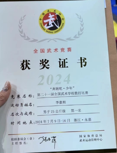 由國家體育總局武術(shù)運(yùn)動(dòng)管理中心和中國武術(shù)協(xié)會(huì)主辦、浙江省溫州市體育局和永嘉縣人民政府聯(lián)合承辦的“奔跑吧,少年”第二十一屆全國武術(shù)學(xué)校散打比賽,于2024年7月9日至16日在永嘉體育館勝利舉行。
