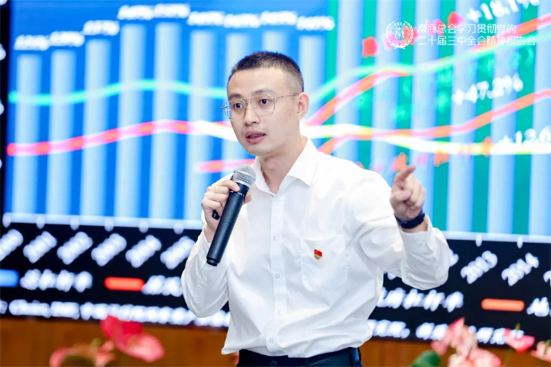 報(bào)告會(huì)上,張奧平院長(zhǎng)圍繞深入學(xué)習(xí)領(lǐng)會(huì)習(xí)近平總書(shū)記在黨的二十屆三中全會(huì)上的重要講話精神,圍繞“構(gòu)建高水平社會(huì)主義市場(chǎng)經(jīng)濟(jì)體制”、“健全推動(dòng)經(jīng)濟(jì)高質(zhì)量發(fā)展體制機(jī)制”、“構(gòu)建支持全面創(chuàng)新體制機(jī)制”、“健全宏觀經(jīng)濟(jì)治理體系”、“完善城鄉(xiāng)融合發(fā)展體制機(jī)制”、“完善高水平對(duì)外開(kāi)放體制機(jī)制”、“深化生態(tài)文明體制改革”、“中國(guó)式現(xiàn)代化”等二十屆三中全會(huì)關(guān)鍵詞及當(dāng)前形勢(shì)和下階段工作任務(wù)進(jìn)行了重點(diǎn)解讀。