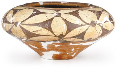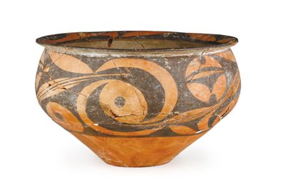 陜西華縣泉護(hù)村遺址出土花卉紋彩陶盆。