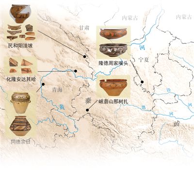 老官臺(tái)文化彩陶作為中國(guó)彩陶文化的根,盡管器形與紋飾較為簡(jiǎn)單,卻意義非凡。半坡文化彩陶紋飾以直線構(gòu)圖為基本特色,尤以魚紋和人面魚紋最為典型。廟底溝文化彩陶紋飾繁復(fù)絢麗,多以若干相同單元圖案對(duì)稱、重復(fù)排列,構(gòu)成多元連續(xù)帶狀紋飾,尤以鳥紋及由圓點(diǎn)、弧邊三角等構(gòu)成的各種花卉紋最具特色。到仰韶時(shí)代晚期,中原地區(qū)彩陶開始衰落,數(shù)量急劇減少,紋飾趨于簡(jiǎn)化,但彩陶文化并未落幕,甘青地區(qū)馬家窯文化彩陶異軍突起,成為繼中原廟底溝文化之后彩陶發(fā)展的又一中心。渭河流域彩陶這一發(fā)展與傳播歷程,也是彩陶文化或中華文明本土起源的有力證據(jù)。