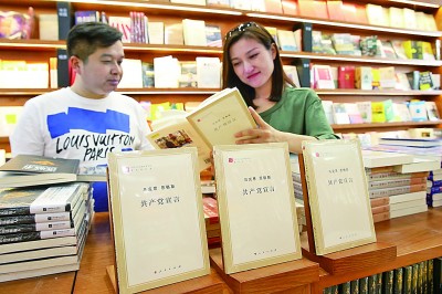 2018年5月4日,讀者在北京王府井新華書店閱讀紀(jì)念馬克思誕辰200周年系列圖書。陳曉根攝/光明圖片