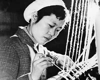 《綻放》以一個(gè)個(gè)意蘊(yùn)深遠(yuǎn)而形象生動(dòng)的紡織故事展開了一軸中國農(nóng)耕文明向現(xiàn)代工業(yè)文明轉(zhuǎn)型的歷史畫卷。那是和谷筆下描寫的山頂洞人使用骨針縫制獸皮衣物;是從長沙出土的戰(zhàn)國時(shí)期中國最早的一塊麻布;是金雀山漢墓出土的帛畫上可能是中國最早的一輛紡車。世界紡織業(yè)形成以印度為代表的棉布文化圈、埃及和兩河流域的羊毛、亞麻文化圈,以及南美智利和厄瓜多爾等地的羊毛、獸毛文化圈,中國則屬于葛麻絲綢文化圈,故此,和谷以《詩經(jīng)·東門之池》中的“東門之池,可以漚麻”“東門之池,可以漚纻”詩句,描寫西周時(shí)期黃河流域的人們采取被西方人稱作“中國草”的苧麻,放在池水中漚泡提取纖維的情景,《詩經(jīng)》中也多處描寫人們采集葛藤制作服飾的場(chǎng)景。和谷深刻體味到紡紗績麻是中國勞動(dòng)人民在與大自然相處磨合中的文明創(chuàng)造,他從先民的“而衣皮葦”敘述到“婦織而衣”,再到李白詩中“秦桑低綠枝”描繪的唐時(shí)桑樹遍植的景象,敘述了棉花進(jìn)入中國的路徑。又以元代黃道婆改良棉紡織技術(shù)和工具的故事,顯示松郡棉布、衣被中華的盛況,也由此揭示上海在中國近代紡織業(yè)中的地位來自古時(shí)棉布業(yè)的發(fā)達(dá)。清末洋務(wù)運(yùn)動(dòng)中以李鴻章、張之洞為代表的洋務(wù)派開創(chuàng)中國現(xiàn)代紡織業(yè),浩浩長江上只見商船往來、帆檣影動(dòng)。