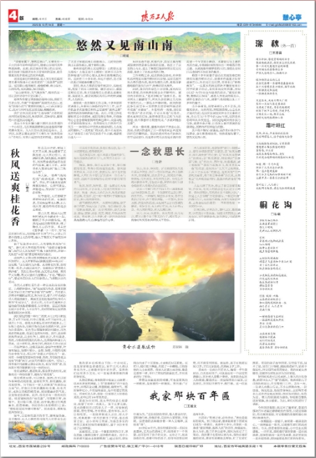 我從小生長(zhǎng)在驪山腳下渭河北岸普通的一個(gè)小村莊,兒時(shí)常眺望著南邊遠(yuǎn)處連綿不斷的群山發(fā)呆。大人們告訴我那就是南山。上學(xué)時(shí),從語(yǔ)文課本讀到了五柳先生“悠然見(jiàn)南山”詩(shī)句后,對(duì)南山更加向往和癡迷。直到讀了大學(xué)才知道此南山非彼南山。兒時(shí)向往的南山正是終南山,屬于秦嶺山脈。