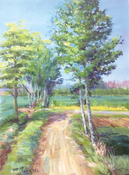 記得我爺爺張全興在世時經(jīng)常給我們講,二十世紀三十年代,十幾歲的他曾隨我的曾祖父在縣城的一家茯茶作坊做工,每天早上天不明就出發(fā),一口氣走到縣城東關(guān),由于那時我的曾祖父張仁望是涇陽縣茯茶作坊的一個小包工頭,村里隨他們一起做工的孩子就有十幾人,他們便從坡底村經(jīng)南馬、皮柳、姚坊、大曲子等村再到縣城硬生生踏出一條便道來,有時過通村小路,有時就走田間地頭,有時走林間,有時走水邊,就是沒有一條寬闊平整的路。爺爺在世時還經(jīng)常向我詢問縣城情況,問問他們原來做工的駱駝巷,問問繁榮的麻布巷、糧集路(爺爺說liang qi hang zi)。爺爺一生沒有離開過小路,以至后來很多時候我都覺得趴在家門口的小路彎彎長長,像極了爺爺?shù)囊簧?,蜿蜒、坎坷、瘦弱、但又堅強!他一生都在路上奔波,在路上謀生活,小路沒有的時候,爺爺也不在人世了。