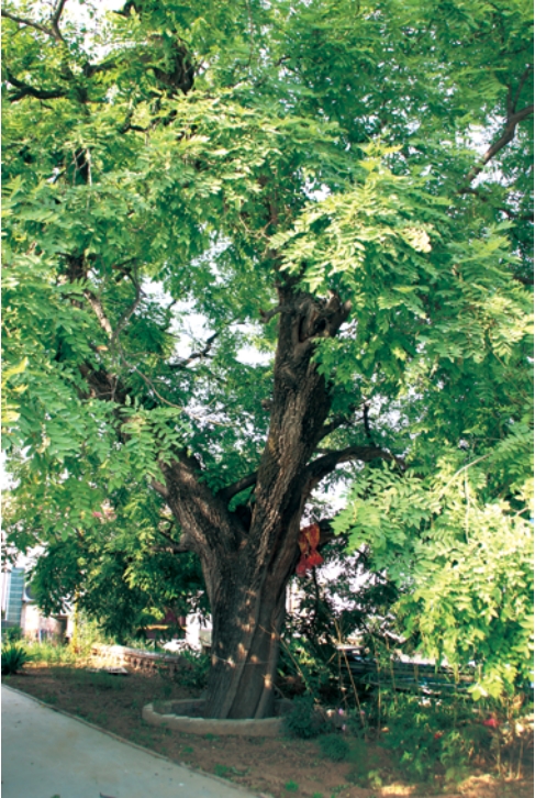 官道村過(guò)去村子較大,土地較多,且大多為水澆地。加上當(dāng)?shù)厝饲趧冢噬钸€是富裕康寧的,古代的鄉(xiāng)村圖景還是十分美麗的,是唐宋之后“文川秀色”的主要部分。由于自古以來(lái)村人喜愛(ài)栽植樹(shù)木,故千年以來(lái)遺留到20世紀(jì)60年代的古樹(shù)相當(dāng)多,雖經(jīng)“大煉鋼鐵”“食堂化”的砍伐,村民自用木材砍伐了一些,但至今仍有一株直徑近1米的古槐存活?,F(xiàn)僅就筆者兒時(shí)的記憶,記述幾株有名的古樹(shù)。
