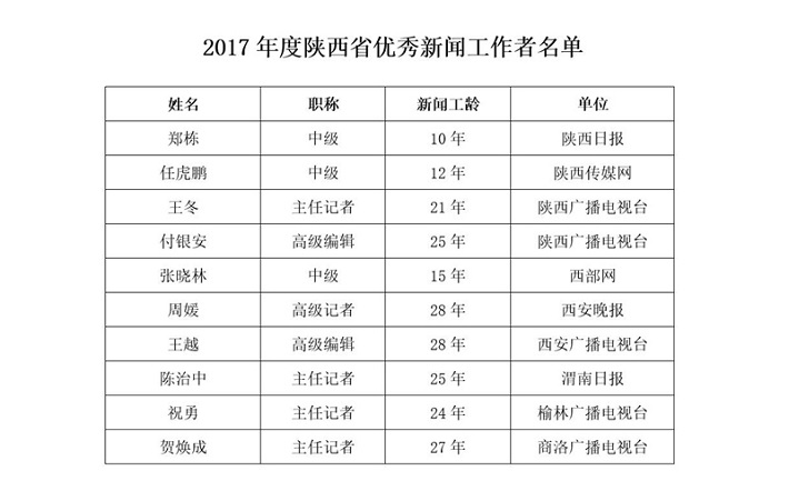根據(jù)《陜西新聞獎評選辦法》關(guān)于公示時間不少于5個工作日的規(guī)定,本屆獲獎作品、優(yōu)秀新聞工作者在西部網(wǎng)、陜西傳媒網(wǎng)進行公示,歡迎社會各界監(jiān)督、評議。