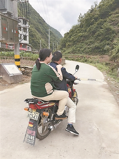 記者坐上扶貧干部的摩托車走訪貧困戶。