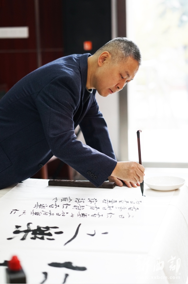 新西部網(wǎng)西安12月5日消息(記者王順利)“智庫之光榮耀三秦·文化名家書畫筆會(huì)”今天在陜西省社會(huì)科學(xué)院成功舉辦,中國美術(shù)家協(xié)會(huì)理事、陜西省美術(shù)家協(xié)會(huì)名譽(yù)主席、長安畫派藝術(shù)研究院院長、著名畫家趙振川,陜西省書法家協(xié)會(huì)名譽(yù)主席、陜西省望賢書學(xué)會(huì)會(huì)長、著名書法家李成海,陜西師范大學(xué)教授、著名秦隸研究專家李甫運(yùn),陜西省書法家協(xié)會(huì)副主席、陜西師范大學(xué)美術(shù)學(xué)院兼職教授、著名書法家路毓賢,陜西省文聯(lián)副主席、陜西省作家協(xié)會(huì)副主席、著名作家高建群,陜西省美術(shù)家協(xié)會(huì)理事、陜西國畫院特聘畫家王松,陜西省作家協(xié)會(huì)副主席、著名作家方英文,陜西省美術(shù)家協(xié)會(huì)副主席、陜西省美術(shù)博物館原館長、著名畫家羅寧,陜西師范大學(xué)美術(shù)學(xué)院教授、碩士生導(dǎo)師、著名畫家孫文忠,陜西省美術(shù)家協(xié)會(huì)理事、陜西省山水畫研究會(huì)主席、西安交通大學(xué)城市學(xué)院藝術(shù)設(shè)計(jì)系主任、著名畫家解安寧,陜西省美術(shù)家協(xié)會(huì)副主席、西安中國畫院院長、著名畫家王犇等省內(nèi)書畫界、文學(xué)界知名藝術(shù)家和作家蒞臨筆會(huì)。