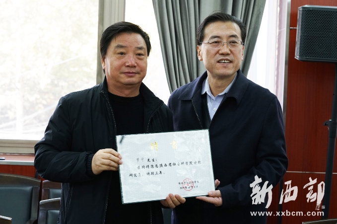 司曉宏院長現(xiàn)場宣布,聘請各位藝術(shù)家、作家擔(dān)任社科院的特邀研究員,并期待藝術(shù)家們?yōu)樯缈圃旱目蒲泄ぷ鳙I(xiàn)計(jì)獻(xiàn)策,提出寶貴的批評(píng)意見,幫助社科院更好地為繁榮陜西文學(xué)藝術(shù)事業(yè)做出更大的貢獻(xiàn)。