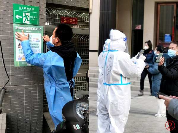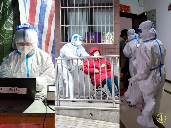 在抗疫這場沒有硝煙的戰(zhàn)場上,陜西省社會科學(xué)院90后新生力量展示了勇于擔當作為的大局觀,共有20余名近兩年新入職的黨員干部和科研工作者積極投入到抗疫工作中,其中一部分剛剛?cè)肼毸膫€月,在自己生活中還存在許多不便和困難的情況下,義無反顧地下沉抗疫一線。教育研究所鄭森經(jīng)常六點起床、凌晨工作,面對辛苦又繁雜的工作,他從沒怨言,反而覺得基層抗疫工作是最生動的課堂,校正了年輕人眼高手低的弊病,錘煉了年輕人勇敢堅毅的品格,培養(yǎng)了年輕人吃苦耐勞的精神。古籍整理研究所邱荻在堅守一線中感受到冬天夜晚的嚴寒,常常手指腳趾凍的不能屈伸,只能靠幾層厚衣服和厚襪子來緩解。宣傳信息中心石劍蘭、李嬌楊下沉至雁塔區(qū)的封控小區(qū),始終處于高強度的工作中,每天近千人的入戶走訪、上門核酸,連續(xù)8小時不間歇的抗疫工作,讓她們已經(jīng)從抗疫小白真正成長為了“大白”(圖④)。