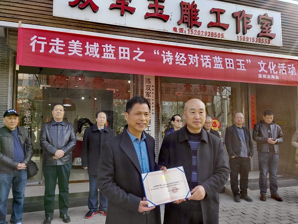 2023年3月3日,陜西省社科院書畫藝術(shù)中心應(yīng)邀參加“行走美域藍(lán)田系列之‘詩(shī)經(jīng)對(duì)話藍(lán)田玉’文化活動(dòng)”,并向書畫藝術(shù)家頒發(fā)了聘書。