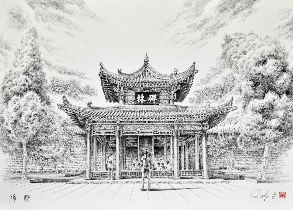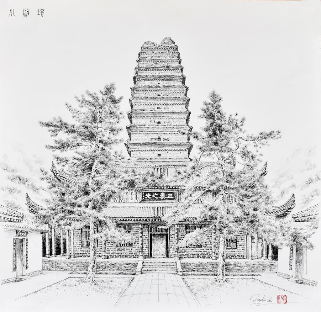 通過鋼筆畫家對所畫建筑之精細(xì)?微的刻畫,?論?幅的宏闊浩瀚,還是咫尺的精微細(xì)膩,都極具觀賞性。習(xí)近平主席曾說過,“古建筑有著豐富的??內(nèi)涵”,受到這句話的啟發(fā),我?寫實鋼筆畫技法把中國的古建筑的獨具魅?表現(xiàn)出來,特別是國務(wù)院頒發(fā)的全國重點文物保護單位建筑群,盡管難度?、費時多 ,但值得。中國古建筑?化是中華優(yōu)秀傳統(tǒng)?化中極為重要的部分,凝聚著中華?族的智慧與結(jié)晶,它太值得我們?nèi)ケ憩F(xiàn)了!