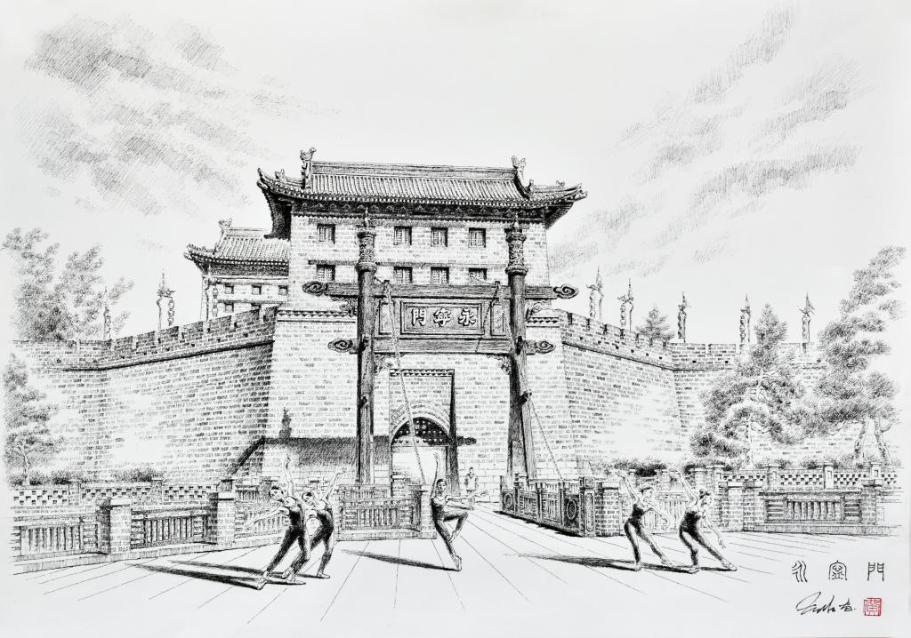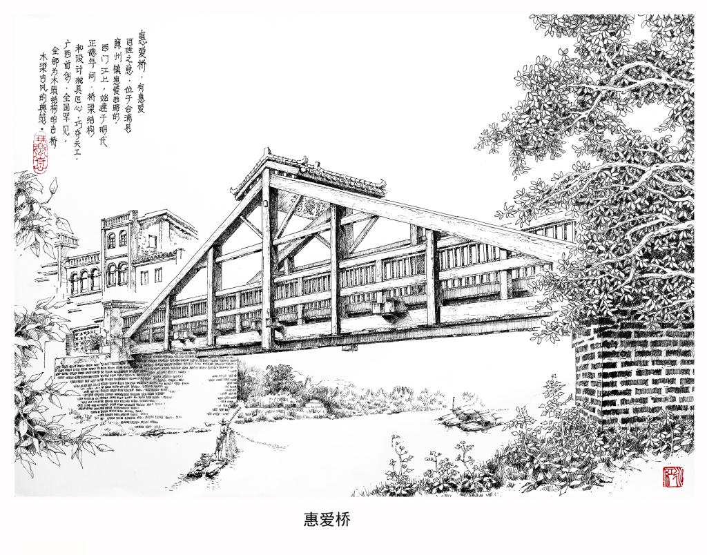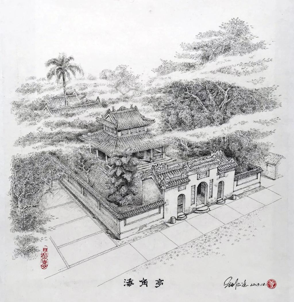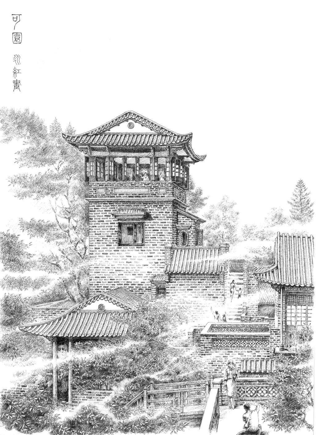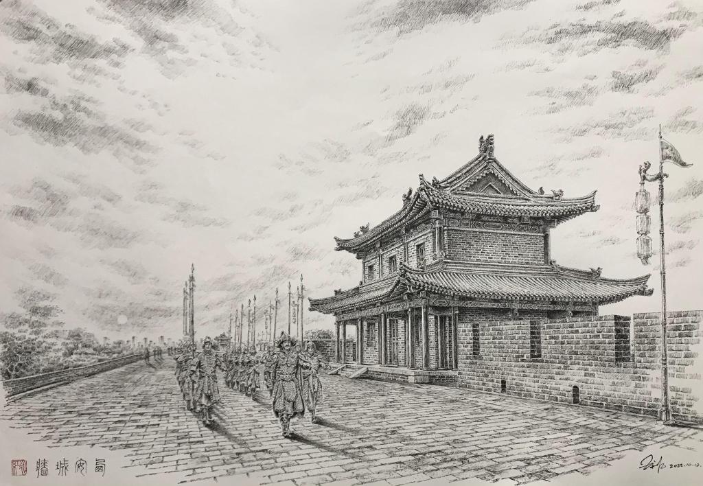 行文到此,我冀望同行畫友永紅繼續(xù)努力鉆研鋼筆畫技巧,磨礪建筑繪畫的專業(yè)素質(zhì),挑戰(zhàn)難度更高的創(chuàng)作領(lǐng)域!并以詩勉之:廢紙三千出精品,再續(xù)萬里山河行;安寫廣廈千萬間,畫為古建耀丹青!