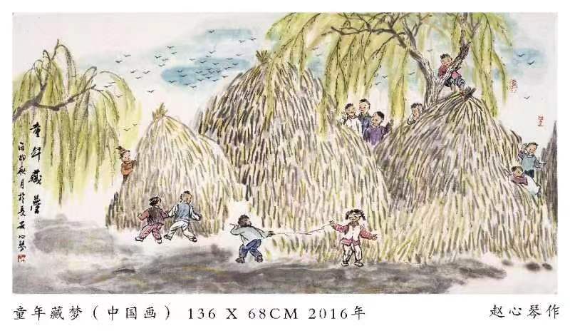 趙心琴的繪畫作品,從心靈出發(fā),用古拙的線條表現(xiàn)孩子憨態(tài),筆隨心性,愛在先,筆在后,所有筆觸之間,都閃爍著童真。她的作品中各種兒童人物的轉(zhuǎn)換,手舞足蹈的天真稚笑,正如她的開朗性格一樣。細(xì)細(xì)品味其畫作,色彩鮮亮,質(zhì)樸純真,意趣盎然。相由心生的真實感從多彩而單純的畫面中自然流露,特別是筆下孩童,天真稚拙、幽默詼諧,令人心生歡喜,輕松爽快。如《暑假的日子》、《童年藏夢》、《無憂娃娃》等作品,趙心琴把這些普通孩子們的日常生活,簡單認(rèn)真地用筆墨描繪出來,自然多了一些欣賞的趣味,筆墨間人物表情的流露,使她的作品在幽默中略帶“文人畫”的天真與和諧。因趙心琴是“兒童”行家,她懂童心,也會“鉆心”,能夠抓住人物的神情和心態(tài),真實反映了當(dāng)時兒童的思想面貌,具有鮮明的時代風(fēng)格,而且繪畫技巧愈趨成熟,在不經(jīng)意的筆墨中流露出“小大人”天真爛漫,無憂無慮的心態(tài),因而我們能感受到童真詩意和作品靈動風(fēng)格的體現(xiàn)。
