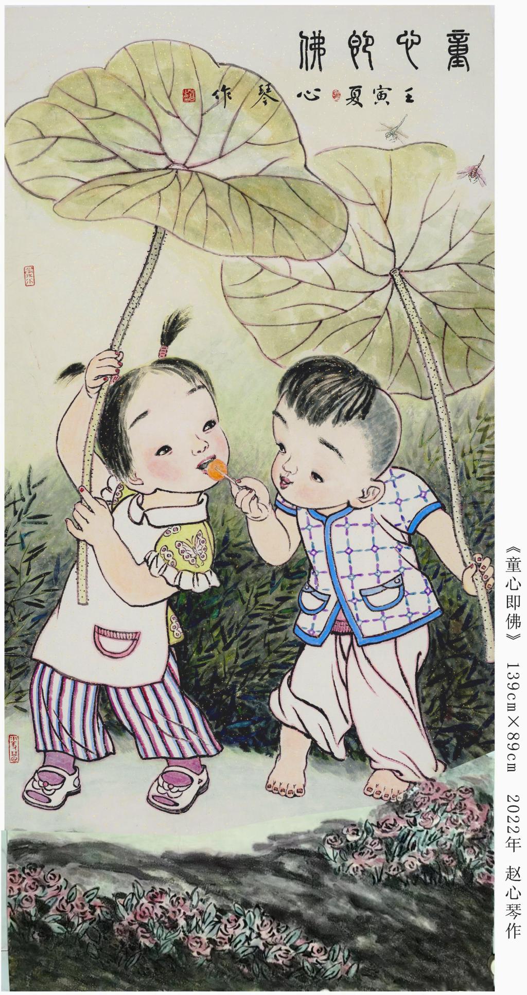 童心、童趣有一種純真天然的詩意,而純粹、本真和澄明則是其中的要素,趙心琴的繪畫作品,在于塑造人格完整的自我,我們看到童真的詩意雖外在于畫面,其實也深入到了畫家個人內(nèi)心,構(gòu)成畫家的藝術(shù)人格。兒童是富有同情心的,而“大人”不但要有深廣的同情心,而且還得有豐富而充實的精神力。