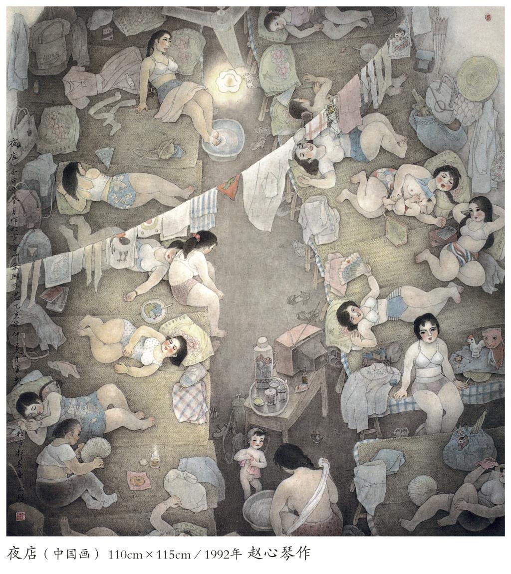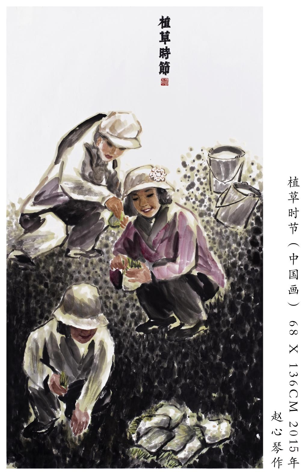 不過我們在看趙心琴作品中的童趣時,也不能只看形象,更應(yīng)該去看到她“至純”和“至愛”童心的繪畫性,她不去追求或者刻意雕琢畫面的完整性,反而以“隨心所欲”的心態(tài)來繪畫,那種久違的出世感,讓人頗為驚嘆,仿佛是一種最純潔心靈的釋放,這或許才是作品最有價值的地方?!豆枢l(xiāng)正月天》、《家庭作坊》等作品,將當(dāng)年安康鄉(xiāng)下大人們的裝束、自然的情態(tài),巧妙而真實地入畫,迥異于不同地域人群的生活習(xí)俗、民間傳統(tǒng),讓她對吃苦耐勞,勤謹(jǐn)節(jié)儉的安康人民油然而生敬意。作品中,生活、勞作中的人們追求美好、質(zhì)樸、恬靜,于是就有了趙心琴筆下大人們的形象,顯得更詩意化,更具唯美特質(zhì)。當(dāng)然,這與她小時候在安康的成長經(jīng)歷分不開,其中的筆情墨趣,更多了一份用心與講究。
