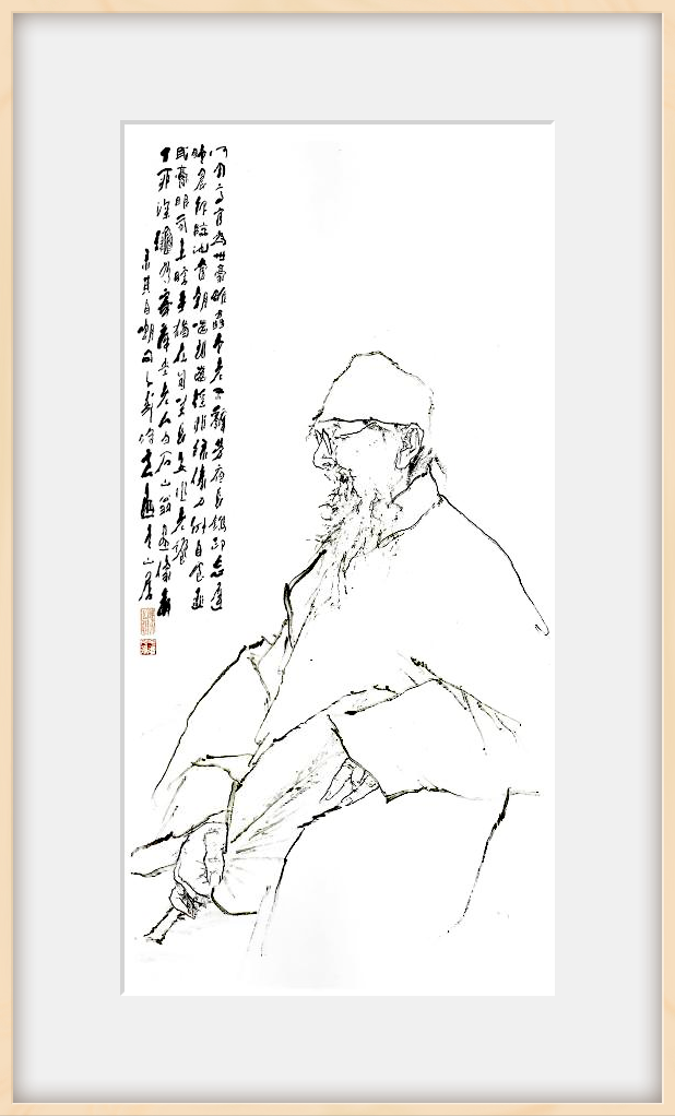 另一方面,王子武對書法藝術(shù)的學(xué)習(xí)和領(lǐng)悟,始終與中國傳統(tǒng)人物畫藝術(shù)相互借鑒、融會貫通。在王子武一系列作品中能夠真切感受到他借鑒傳統(tǒng)文人畫的用筆,其中就包含對書法用筆的借鑒。王子武承襲了先學(xué)在藝術(shù)創(chuàng)作中達成的書畫審美共識,以深厚的書法修養(yǎng)與豐富的文化底蘊而立足,明曉書法與繪畫用筆的同源之理,在書法本體上下真功夫始終是根本,例如吳昌碩、齊白石、趙孟頫三位大家的書法功底都很深厚,在他們繪畫中的筆線質(zhì)量高超,建構(gòu)以風(fēng)格與形式相諧相融的書體范式。