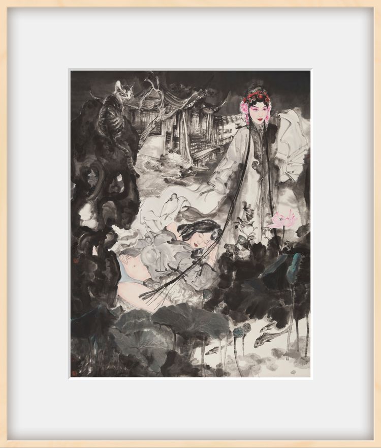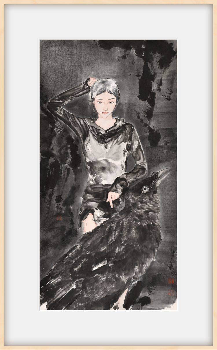 四、在傳統(tǒng)筆墨體系中,線是中國畫造型的命脈,即“線性語言”。在人物畫中,由于古代的傳統(tǒng)服飾很適合流暢且富于變化的線條勾勒,但現(xiàn)代社會的豐富性對傳統(tǒng)繪畫語言提出了挑戰(zhàn),單純的“線性語言”很難滿足現(xiàn)代社會紛繁復(fù)雜的視覺要求,由傳統(tǒng)“沒骨”畫法發(fā)展而來的“面性語言”在現(xiàn)代水墨人物畫語境中凸顯出其豐富的表現(xiàn)力,這個“面性語言”包括對背景的處理,傳統(tǒng)的計白當(dāng)黑、畫面背景普遍的空白已經(jīng)逐漸不能適應(yīng)當(dāng)代美術(shù)館的展陳效果和當(dāng)代審美的視覺需求,所以打破所有已經(jīng)存在的筆墨經(jīng)驗進(jìn)行重組,拓展筆墨語言的寬度是重要的,如果有人問:“這樣畫也可以嗎?”這正是藝術(shù)家希望你發(fā)出的問題。