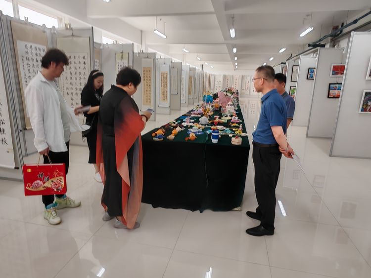 一行三人在范建峰院長和張媛老師陪同下,參觀了學院正在舉辦的師生書畫藝術展和陶瓷藝術學院工作室。